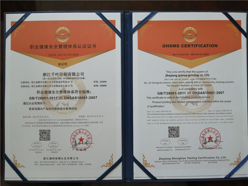 浙江千葉印刷有限公司 廠址:衢州市衢江區(qū)廿里工業(yè)園區(qū)圣效大道24號電話:0570-3820117手機:13059786991(蔡經(jīng)理)